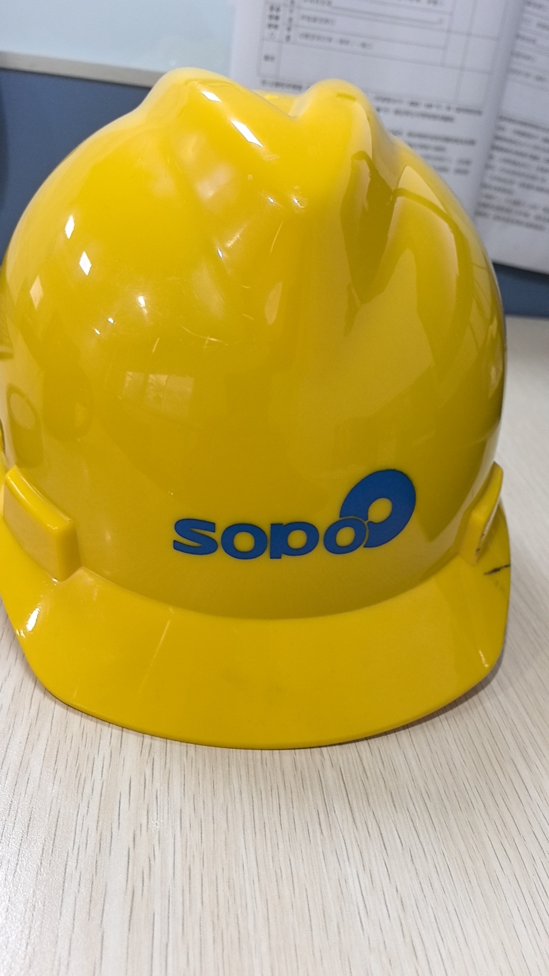 2.安全帽共4个颜色(红色、黄色、橙色、白色)安全帽上正面需印有“SOPO”字母、后面要印有“索普”。
